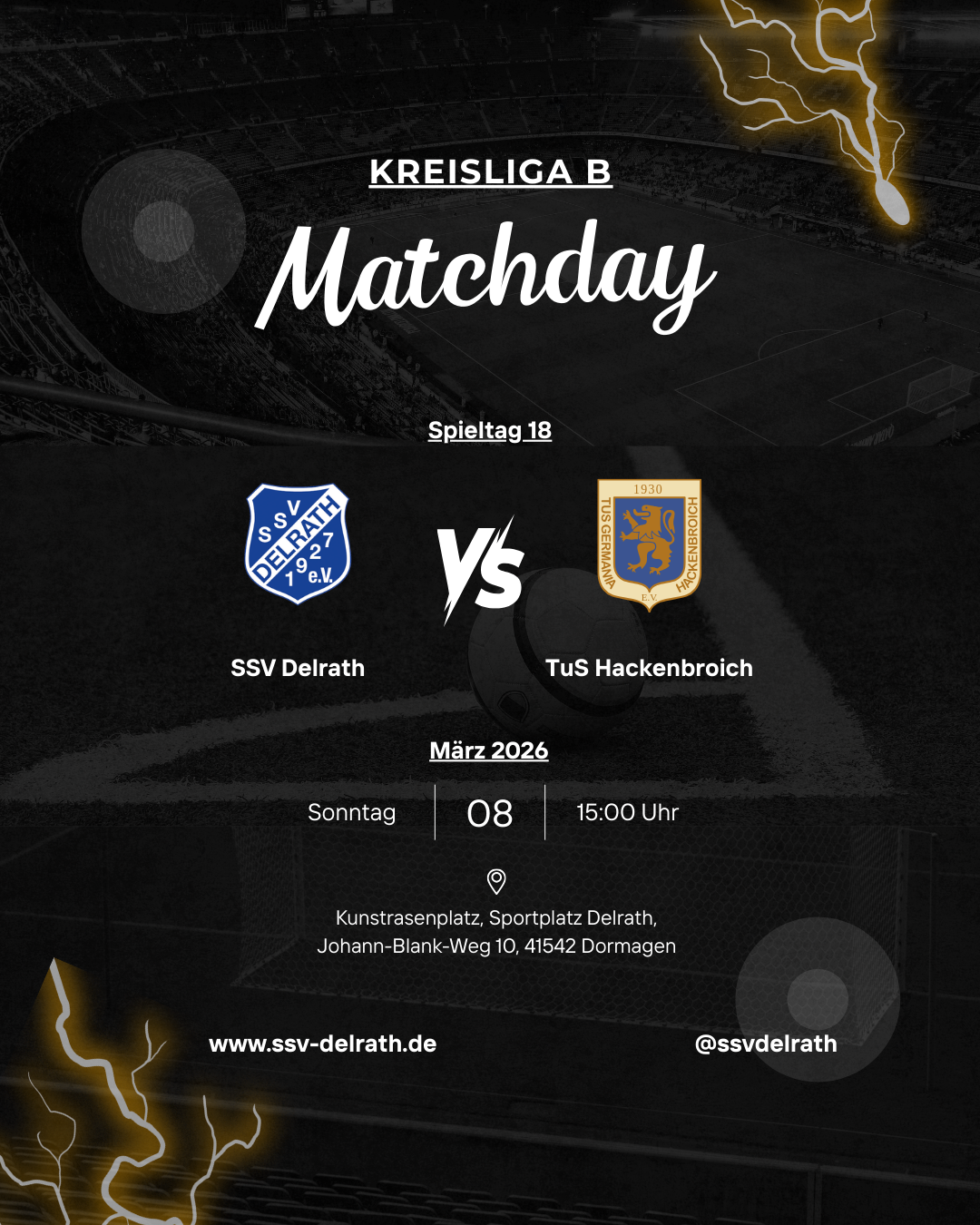 Gleich zum Rückrundenstart wartet ein echtes Highlight. Mit dem TuS Hackenbroich gastiert am Sonntag ein direkter Konkurrent in Delrath. Beide Teams trennen lediglich zwei Punkte und zwei Tabellenplätze – Spannung garantiert.