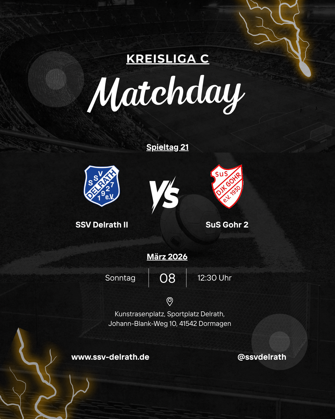 Bereits um 12:30 Uhr empfängt die Zweitvertretung des SSV die Zweite des SuS Gohr.