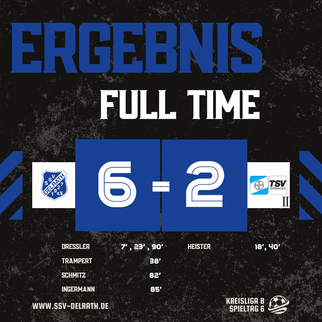 Obwohl der Schiedsrichter mit einigen fragwürdigen Entscheidungen für Unruhe sorgte und zwei klare Tore für Delrath aberkannte, tat sich die Mannschaft auch in der zweiten Halbzeit lange schwer. Erst in den letzten zehn Minuten belohnte sich das Team mit drei weiteren Treffern.